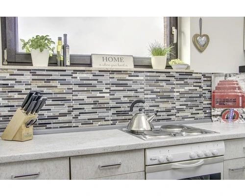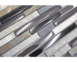 Dit mozaïek bestaat uit natuur- en glasstenen met RVS-applicaties. Dit heldere design is een ideale basis voor moderne wanden in uw badkamer, woonkamer en keuken. Hiermee kun je je eigen accenten aanbrengen. De harmonische kleuren geven een duurzame schoonheid en laten zich goed combineren.