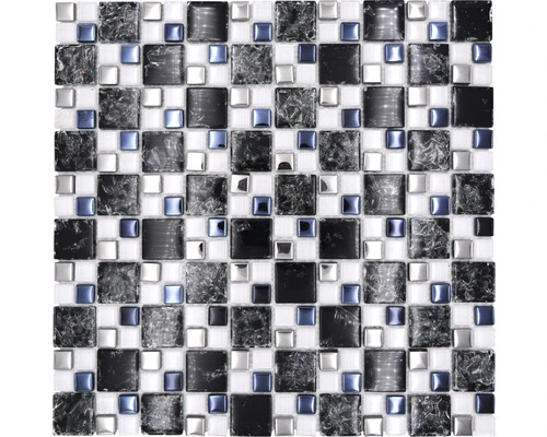 Glasmozaïek Chrystal XICK 1499 Zwart/wit/zilver Craquelé/gebroken Glas 33,8×33,8 Cm