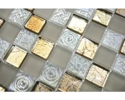 Glasmozaïek XCM 8LU80 Wit/goud/beige 29,8×29,8 Cm