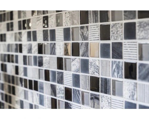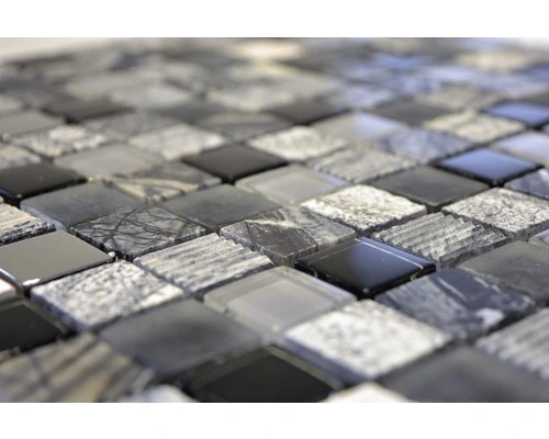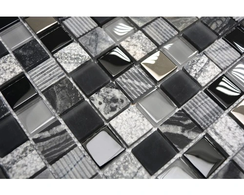 Glasmozaïek XCM HQ24 Zwart/zilver/wit 30×30 Cm