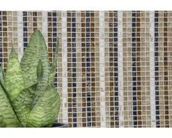 Mozaïek van glas kenmerkt zich vooral door zijn krasvaste oppervlak, vorstbestendigheid, onderhouds- en hygiënevriendelijkheid evenals door zijn schitterend heldere kleuren. Door lichte kleurnuances in het materiaal kunnen hele mooie kleureffecten verkregen worden – dus kun je ook in de badkamer kleuraccenten plaatsen.