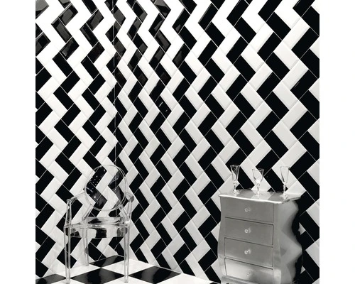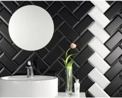 Wandtegel Metro Biselado Negro Glans 10×20 Cm